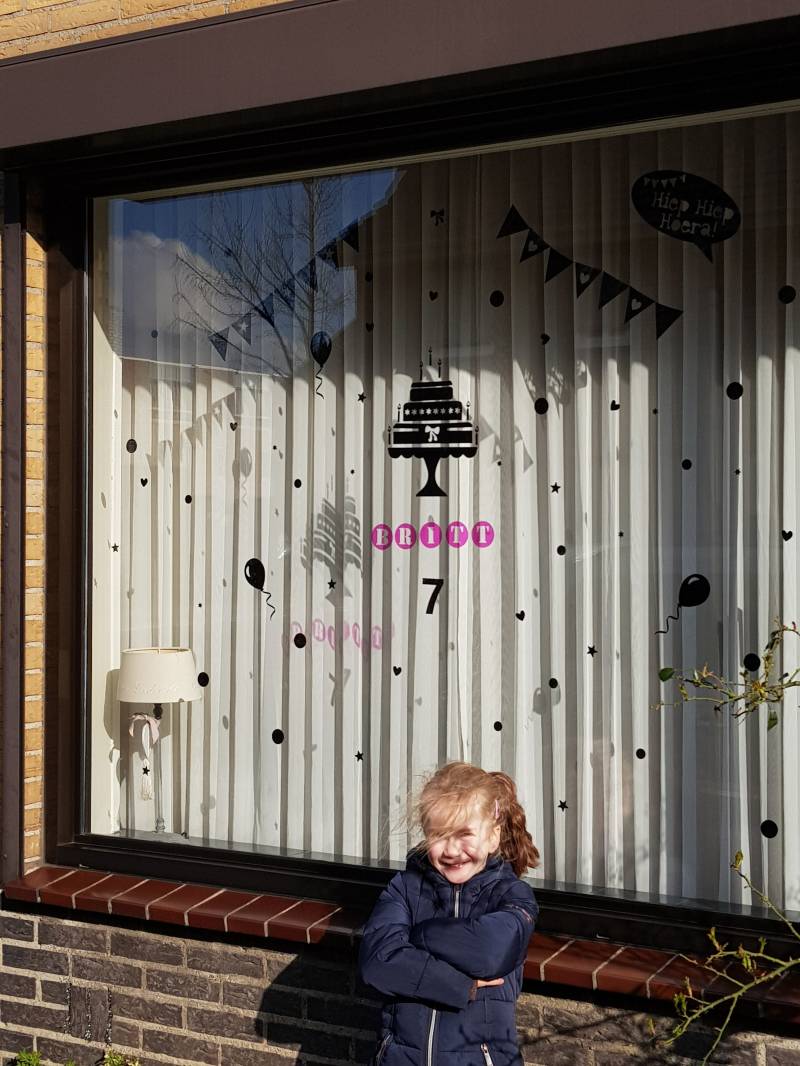 Ken je dat gevoel dat je soms helemaal blij bent met dat ene item! Het hoeft maar iets van de sale te zijn. Wat een paar keer over de kop is gegaan. Daar word ik zooo blij van hè. En dan de afprijsstickers eraf krabben en samen optellen om te kijken wat je je bespaard hebt. Net als zaterdag bij de Huishoudbeurs. Een prachtige tas gezien. Niet gekocht. Anders was ik 100 euro lichter. Maar wat een tas. Ik ben gewoon verkocht. En hoop die nog een keer tegen te komen . Weliswaar wat goedkoper. Een paar maanden geleden vroeg ik aan Judith van kado 41 of ze voor mij een leuk raamfolie kon ontwerpen voor de verjaardag van Britt en Koen. Wat een feest toen ik de envelop openmaakte. Ik kon niet meer wachten en heb ze al op de raam geplakt. Ruim een week van tevoren. Och ik lag voor de bevalling bij Britt toch eerder in het ziekenhuis. Tel ik dat gewoon mee. 🤣Maar eerlijk is eerlijk. Hieronder een foto met het resultaat van onze raam . Een kei leuk setje wat ik op de raam plak. Ik zit niet meer te klooien met die opblaasletters wat me 100 keer van de raam valt. Er zijn eenmalig kosten en ik kan ze jaren opplakken met hun verjaardag. Ik ben net een blij ei die iedere keer weer blij is wanneer ik naar onze raam kijk🤣😍. Oh en als je ook niet meer wil prutsen met die opblaasletters. Hier de link:https://www.kadostudio41.nl/c-5171929/verjaardag-set/
