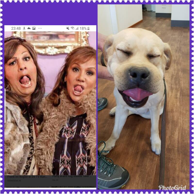 Zo laatste week van de meivakantie is begonnen. Hopelijk gaat het deze week beter en volgen er geen doktersbezoek en dierenartsbezoeken. Ik was er afgelopen vrijdag helemaal klaar mee. Nu kan ik erom lachen. Maar vorige week! Pfff. Kom je buiten terwijl je net van tevoren met haar gespeeld hebt op het grasveld. Staat daar een vreemde hond te kwispelen. Het was net alsof ze een grote bal had ingeslikt . Maar nee. Ze was helemaal opgeblazen. Steven Tyler was er niets bij. Evenals Patty Brard kon nog wat van haar leren. En kon ze zo meedoen met de tv kantine. Ik had het zo gehad dat ik mijn vriendin gebeld heb. Die met ons mee is gegaan naar de dierenarts . Aangekomen bij de dierenarts was het een allergische reactie op een bijensteek. En kreeg ze 2 prikken. We mochten weer naar huis en na 2 dagen was de zwelling weg. Zaterdag was het Koningsdag en hebben we weer voor een goed doel wafels verkocht met de Giebelvötjes. Wat een leuke dag was dat! En wat zijn we goed verzorgd geworden met heerlijke soep en lekkere gehaktballetjes. Met Britt gaat het wel weer. Ze is het gips moe en met de pijn gaat het wel weer. De zetpillen voor de pijn wil ze niet meer want daar krijg ik fledderscheetjes van. Maar goed . Vandaag is het maandag en hopelijk hebben we een rustige week voor de boeg. Ik weet wel dat het hier nooit saai in huis is.......