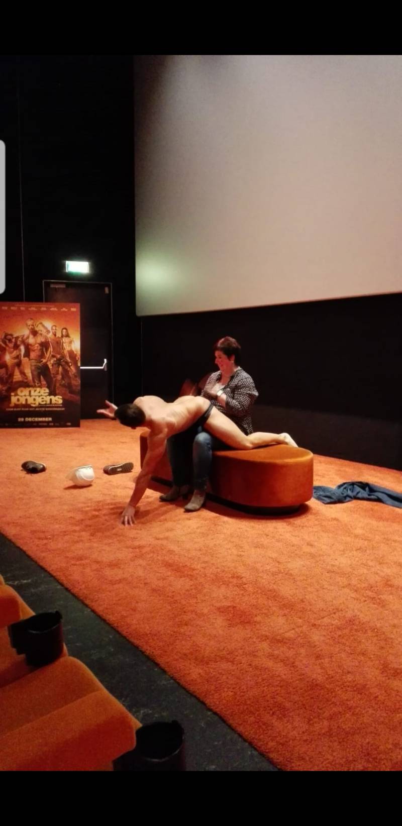 Zal ik wel of zal ik niet schrijven over dit onderwerp. Eigenlijk een best leuk onderwerp. Het begon allemaal voor een paar jaar terug. Ladiesnight in de bios waar we naar de film van onze jongens gingen kijken. Wat hadden we een pret. Vooral toen we te horen kregen dat er in de pauze een stripper zou komen. De eerste deel van de film hadden we gezien en het was echt een prettige film om te kijken. Na de pauze zaten we heerlijk hoog en droog op een van de bovenste rijen. Al neerkijkend op het podium komt er een presentator en naast hem staat een heuse bouwvakker. En ineens hoor ik die beste man zeggen. Wil Heidy naar beneden komen? Goh er is nog een Heidy in de zaal en al loestig kijk ik om me heen. Maar geen Heidy te zien. Mijn vriendinnen zie ik ineens sneaky lachen en ineens begin ik het te beseffen. OMG. Hij bedoelt mij. En met knikkende knieën ben ik omlaag gelopen. Beneden aangekomen word ik op een bankje gezet en begon die stripper sensueel te dansen op een opzwepende nummer. Zijn helm gaat af van zijn hoofd. En langzaam gaan zijn handen over zijn lichaam en komt hij voor me staat in een minibroekje. Oh god dacht ik nog. Hij pakt mijn handen en strijkt ermee over zijn wasbord. Een hele echte 6 -pack. Mijn eerste en overigens de laatste keer dat ik dat gevoeld heb. Maar goed. Hij danst nog een paar passen en begint met zn billen te schudden. Het zweet breekt me uit. Hij trekt zn onderbroek half uit en pakt mijn handen vast en legt die op zijn billen. Jezus. En ik bedenk me geen moment en trek hem zijn onderbroek weer aan. Maar die ging net zo snel weer half uit en komt voor me liggen . Oh god. Ik kijk tegen 2 nekse billen en trom er een beetje op. Zijn onderbroek gaat weer aan en ik word een paar minuten geblinddoekt. Achteraf al terugkijkend op de filmpjes zie ik dat ik een vrolijke op mijn hoofd had staan. Maar goed. Die onderbroek ging dus helemaal uit maar er ging discreet een grote doek voor. Ik heb zijn jongeheer dus niet gezien of gevoeld. En daar was ik maar wat blij om. 29 Januari gaan we weer naar de ladiesnight met een gedeelte van de giebelkontjes. Ik kan nu al zeggen dat ik die avond geen Heidy heet. Misschien is Truus wel wat of Nel.......