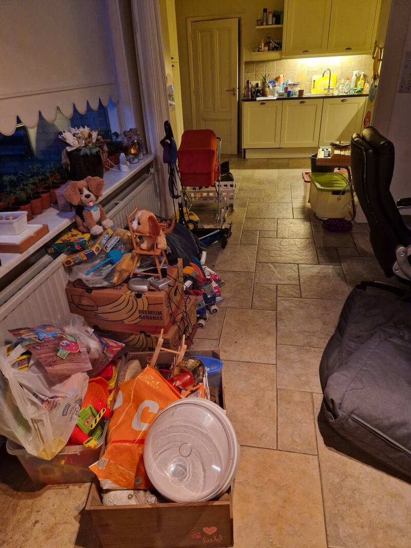 Koningsdag. Een dag van vroeg opstaan. Wekker zetten hoeft niet, want wij hebben Koen. Plus onze plaatsen zijn gereserveerd. Dussss wat willen we nog meer. Tja. Alles verkopen zou mooi zijn, want wat is er nu zo mooi aan een rommelmarkt. Juist ja. Je word je rommel kwijt. We zijn al dagen aan het opruimen. Herinneringen worden opgehaald. Spullen komen tevoorschijn. Je verbaast je bij iedere doos wat een spullen je hebt bewaard. Je zet alles klaar. Je maakt puzzels . Je zet racebanen inelkaar. Je draait je even om en ineens word er vol overgave met de spullen gespeeld. Je vraagt je bijna af waarom je het überhaupt verkoopt. Maar goed. Alles word verkocht met medeweten van Britt en Koen. Een paar jaar geleden haalde Britt namelijk met dikke tranen speelgoed van de tafel. Want het mocht absoluut niet verkocht worden. Dus nu weten ze ervan. Ik hoop wel dat het verkocht gaat worden want niets erger dan de spullen weer terug te zetten. Heb je net alles opgeruimd. Oh en even Britt instrueren dat ze geen spullen mag aannemen. Met de boodschap geef maar aan mam.......... Och misschien is het beter dat ze de Tiendstraat overslaat 🤔.