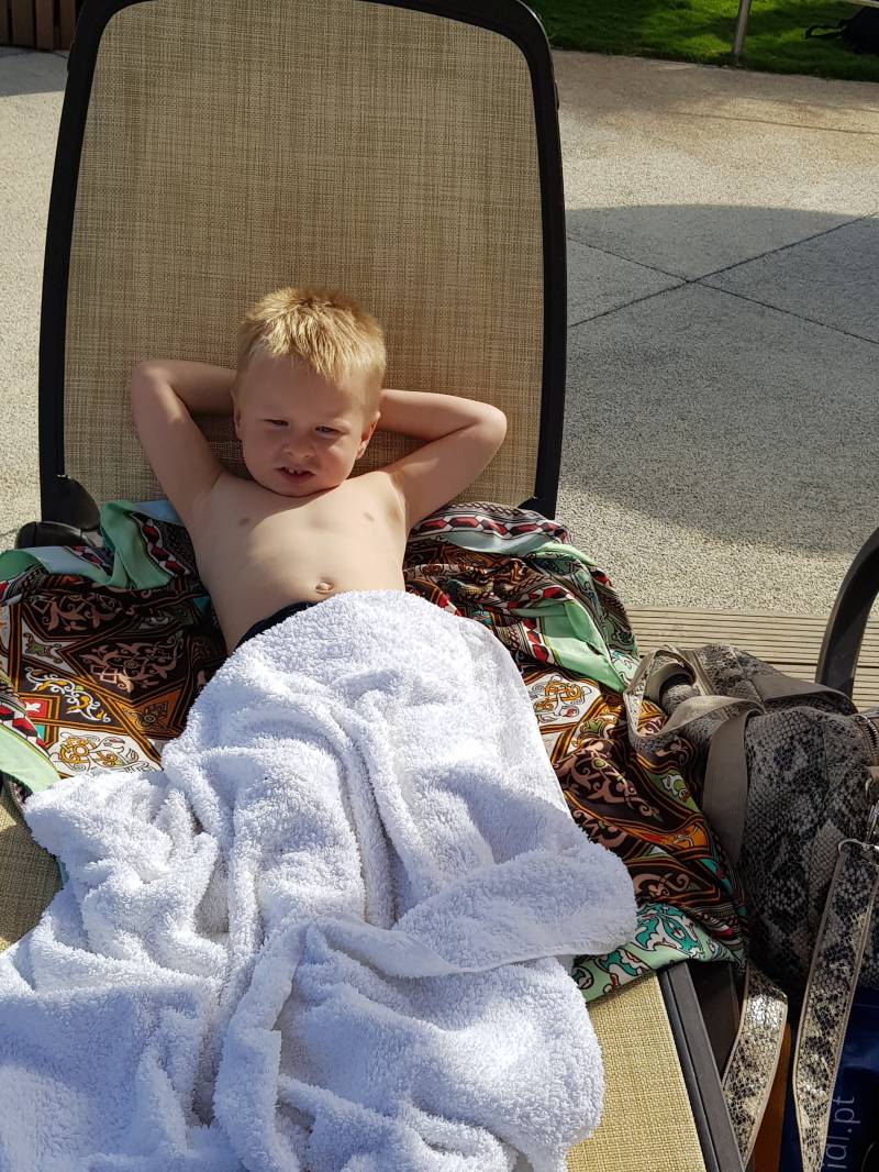 Na twee nachten wat minder te hebben geslapen ging het afgelopen nacht goed. Geen kinderen die je nachts de stuipen op je lijf jagen. Waardoor je van schrik alles bij elkaar schreeuwt 😳🙈. Maar goed. Het was dinsdagmorgen. De dag dat we met de taxi naar Zoomarine gingen. Een aquapark met veel leuke dingen. Attracties, dieren, zwembaden en leuke lifeguards. Wat een prachtig park. En wat een mooie zwembaden. Ook het kinderbad met grote klimrek en glijbanen. Er was overal toezicht en niets ontging de lifeguard. Bij iedere overtreding werd er op een fluit geblazen. Mam en ik lagen prinsheerlijk op een ligbed en bekeken ons het allemaal. Wat een mensen allemaal van alle soorten en maten. Ook qua badkleding. We hebben vooral veel gelachen en geleerd. Ga niet zwemmen met een uitgelodderd elastiek in je zwembroek. Er ging een bak water om en viel precies op de achterkant van een man. Met als gevolg dat we tegen 2 witte halve manen keken. Prompt zie ik Koen naar de lifeguards lopen en vraagt. Ik wil auk op dien fluit bloazen. Huh. Ik zie ze denken en loop ernaar toe. Om te vertalen. Niet begrijpend kijken beide me met een stralende glimlach mij aan. Halleluja dacht ik nog. He wants to blow your whistle. En ik wijs naar hun fluit die om hun pols zit. Ze schieten beide in de lach en ik smelt nog meer. Tjee. Baywatch was er niets tegen en ik neem Koen mee terug. Waar mam in de lach schiet wanneer ik haar vertel wat koen vroeg. Pierrot en Britt komen terug uit het diepe en we lopen gezamenlijk nog naar een ander zwembad. Waar ik Koen ineens voorbij zie lopen met een grote boodschap aan de achterzijde. Met cowboy billieboem loop ik naar de douches om de situatie onder controle te krijgen. Kijkt hij me aan met zijn blue eyes. Mam dich bis mega mindy. Superheld want dich hes mich gered. Ik voelde me eventjes smelten😍. Maar goed. Ook deze dag ging teneinde en werd afgesloten met een héérlijk avondeten.
